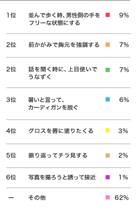 “女性の今日はOKサインは何なのか”ウォーカー社「女子の法則」の協力を得た約2000人の女性からのアンケートだそうです。