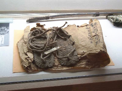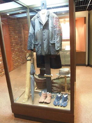 そして、破れた帽子をかぶり、つぎはぎだらけの古びた上着とズボンに脚半(旅などで歩きやすくするためにすねにまとう布)を付け、手編みのわらじで村内をくまなく歩いた。