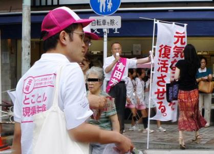 次にやってきたのが、民主党の有田芳生(ありたよしふ)候補です。