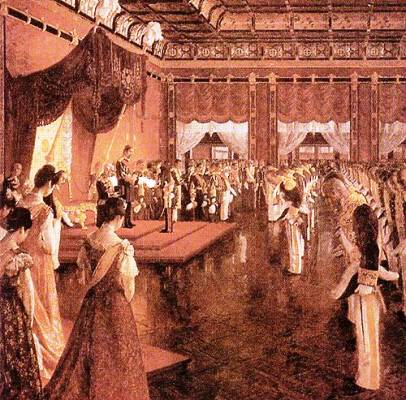 朕は、国家の隆昌と臣民の慶福とを中心の欣栄とし、朕が祖先から受け継いだ大権によって、現在および将来の臣民に対し、この憲法を発布します。
