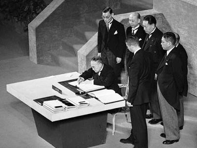 終戦の日から65年を迎えた今日、わが国は、独善的な平和主義を排し、責任ある独立国家として国際協調に協力し、妥協を許さない弛まぬ安全保障政策の下、それを通じて、平和の理念を押し広めてまいります。