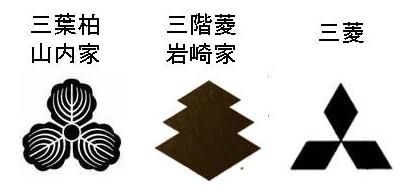 そして三川商会の「三」を意匠してマークにしようと、土佐藩主であった山内家の三葉柏と、岩崎家の三階菱の家紋を合わせて、三菱のマークを作ります。