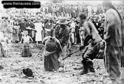 上の写真は、明治24(1894)年、清朝末期の頃の支那の処刑の模様です。