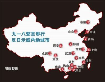 冒頭のMAPは、支那国内の反日デモの所在地です。