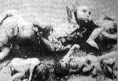 ようやくかけつけた日本軍がそこで見たものは、言語に絶する惨状でした。