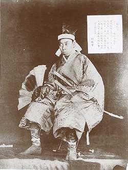 戦装束に、特別に大きくあつらえた日の丸の扇子を持っています。