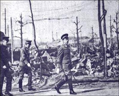 ↑この写真は、昭和20年3月18日、昭和天皇が東京下町大空襲被災地を巡幸されたときのものです。