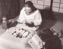 こうしてその学生は、ようやく母親を縁側に連れて行き、たらいにお湯を汲み入れました。