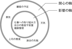 「関心の輪」=関心はあるが、自分では影響できないこと(天気や株価など)
