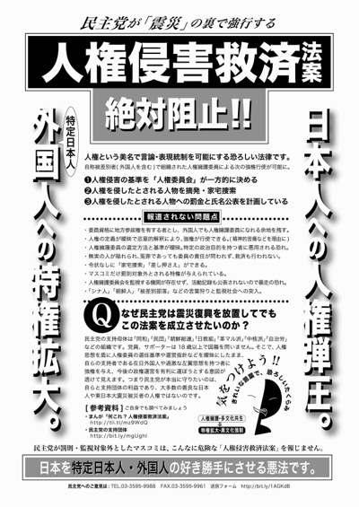 ですから人権救済法案は、なにがなんでも与党、内閣に「提出させない」ことが重要なのです。