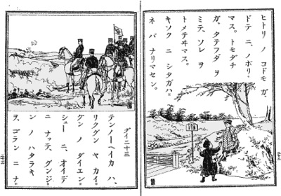 木口小兵が、敵の近くですこしも恐れず、三度まで勇ましく進軍のラッパを吹きました。