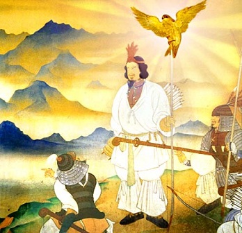 万物の支配者の子である桓雄(ファンウン)がChinaと満州との国境にある白頭山に降り立ちます。