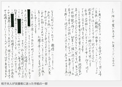 現在、消費税増税法案の採決をめぐって、小沢元代表は造反をちらつかせて野田政権を揺さぶっているが、和子夫人の手紙はそうした政治情勢にも大きな影響を与えそうだ。