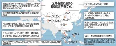 韓国も先進国へと成長する過程で、“売春女性輸出国”というイメージは大きなマイナス要因になるだろう」と指摘した。
