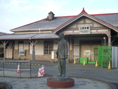 ちなみにこの駅、明治29年には夏目漱石が、五高に赴任するためにこの駅に降り立ち、それを記念して、いま駅の前には漱石のブロンズ像が建てられています。
