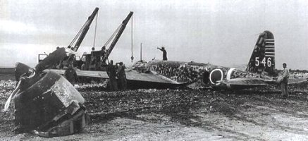 空挺隊の乗る飛行機は、速度の遅い爆撃機です。