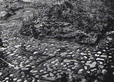 写真にみえる水たまりのようなもの、それが砲弾の跡です。