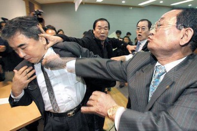 冒頭の写真は、韓国ソウル大学の李 栄薫(イ・ヨンフン)教授が、殴る蹴るの暴行を受けているときの写真です。