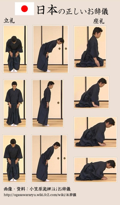 けれども、普通のビジネススーツや和服姿でこんなお辞儀をするのはどうかしています。