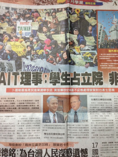 だからこそ、このAIT理事が「学生たちの行動を非法」と述べたというニュースは、台湾の各紙の一面を飾る大問題となったわけです。