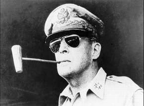 写真のマドロスパイプを咥(くわ)えたマッカーサーの姿は、彼が日本に降り立ったときの姿としても有名なものです。