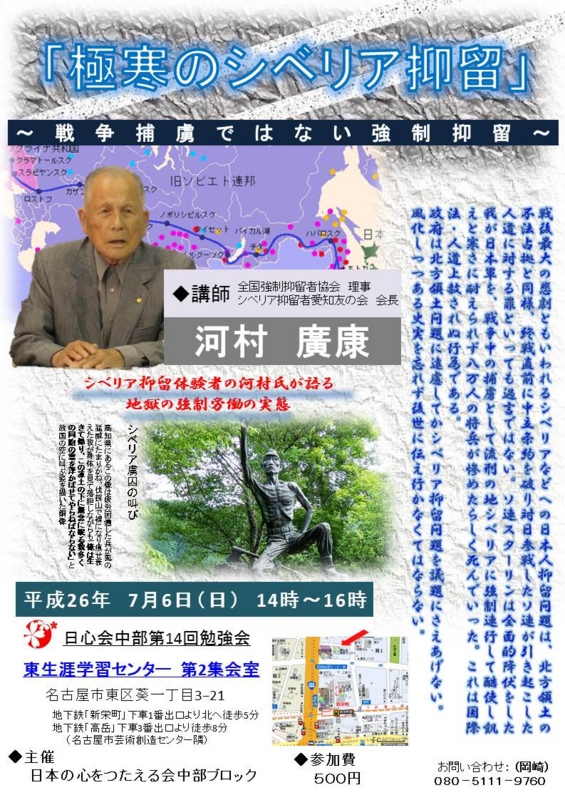 今回は講師にシベリア抑留者愛知友の会会長であり、全国強制抑留者協会理事である河村廣康氏をお迎えしてお話を伺います。