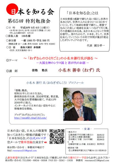 9月6日夕方より「日本を知る会」ご主催の勉強会で講演を行います。
