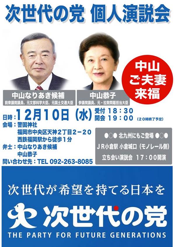 特に、九州比例の中山なりあき先生は、どうしても通って頂きたいのです。