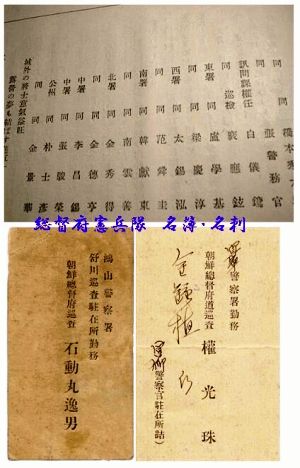 下の写真は、朝鮮の警察官の名簿・名刺です。朝鮮人ばかりです。