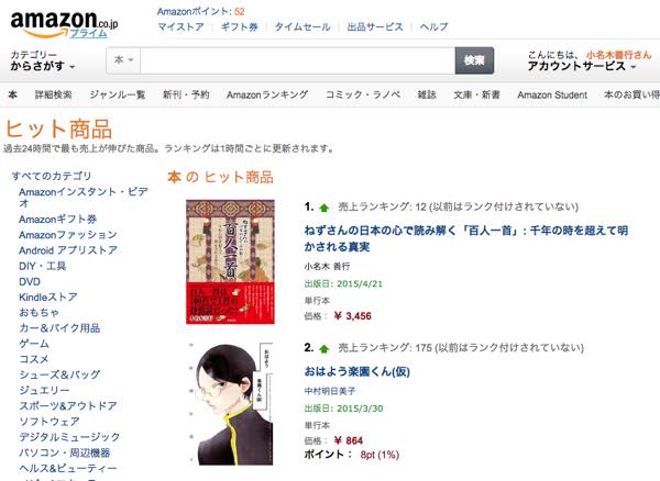 Amazonヒット商品ランキングで、ねずさんの百人一首が堂々第一位となりました!