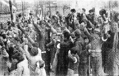 市民は各戸に「歓迎北伐軍」の小旗を掲げ爆竹を揚げて歓迎した、