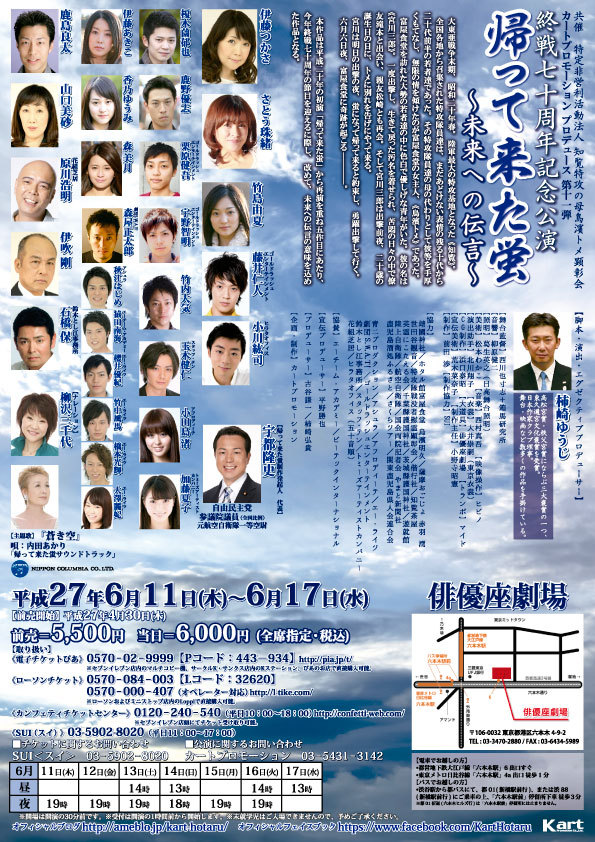 カートプロモーション・プロデュース『帰ってきた蛍』を一昨日、観劇させていただきました。
