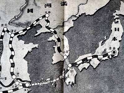 下関から、朝鮮海峡海底トンネル(全長約200キロ:世界最長トンネル)を経て、釜山へ渡り、そこからソウル、奉天(現瀋陽)を経て、以前ご紹介した満州国首都である新京(現長春)へ、分岐した一本が、北京へと到達する大路線だったのです。
