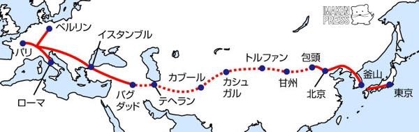 そしてこの両者は、北京から甘州、トルファン、カシュガル、カプール、テヘラン、バグダット、イスタンブールを経由して、ローマやパリ、ベルリンとも結ばれるというのが、明治の日本人が立てたアジア鉄道の大構想です。