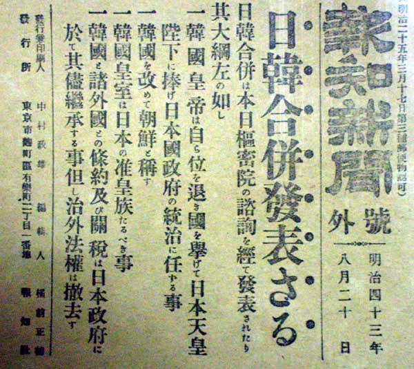 日本は明治43(1910)年8月29日、「韓国併合に関する条約」に基づいて大韓帝国を併合しました。