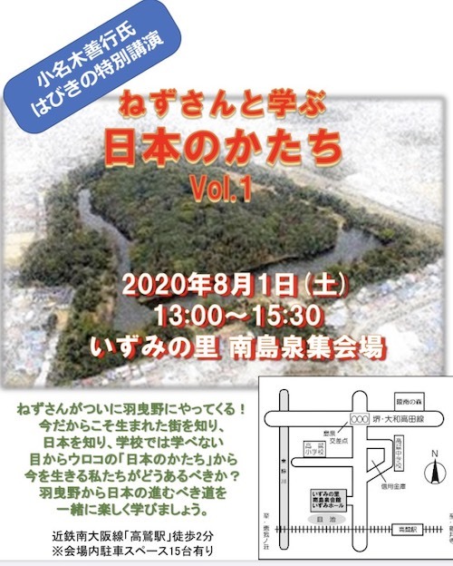 8月1日13時〜15時半、大阪府羽曳野市のいずみの里南島泉集会場で講演を行います。