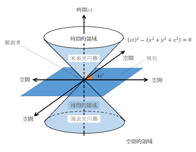 図の下にある円錐が示すように、その中には無限の過去が存在するわけです。